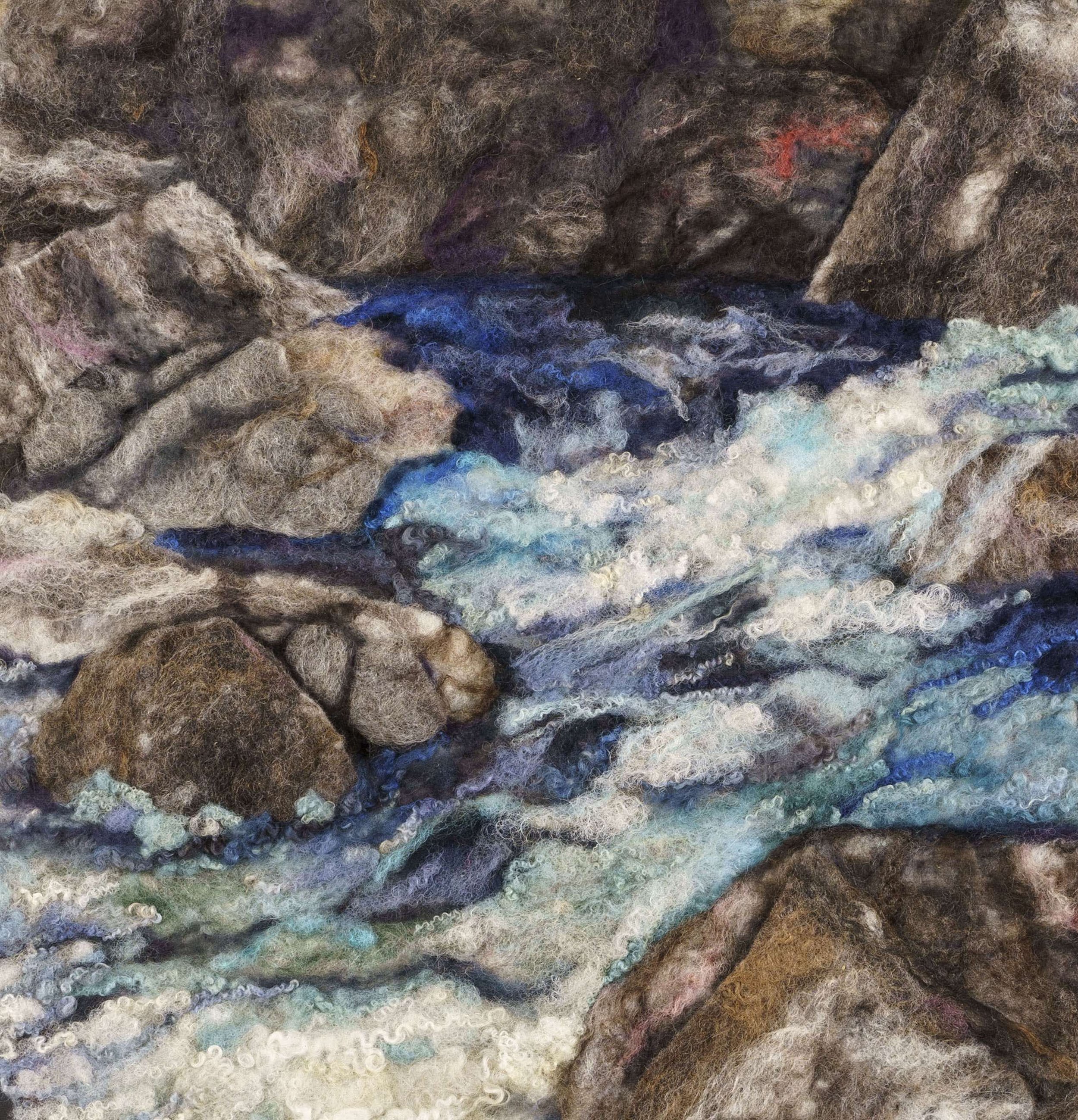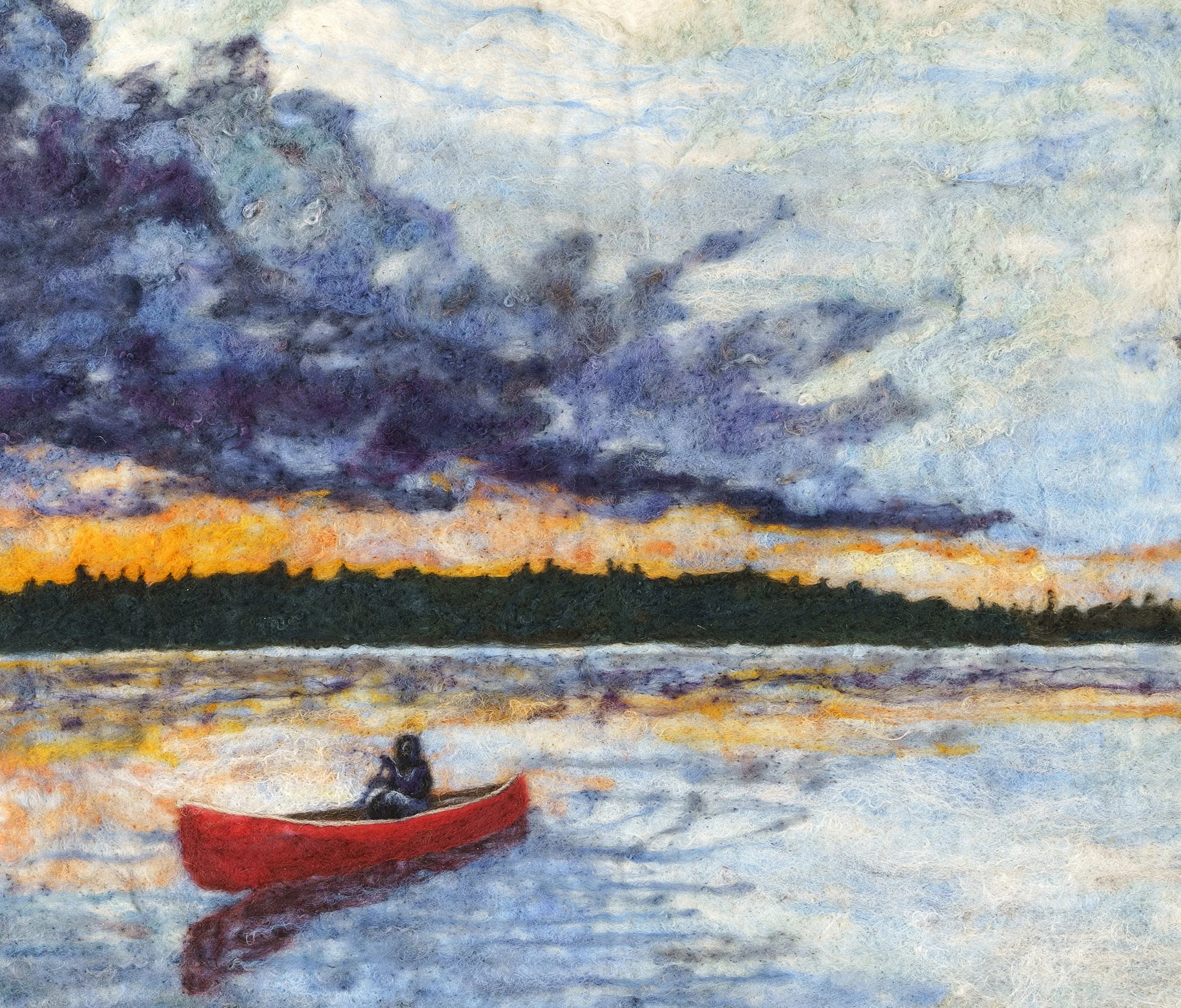 Using the wool sheared from our resident sheep, pam then washes, dyes and cards the fleece to create felt. This background felt then provides the ideas on a direction to take my landscape art. Pam’s art is very intuitive in nature and she enjoys the journey her imagination and her spirit takes her on with each piece of art she creates, She feels so privileged to live in such a special place as Canada and especially Muskoka with its rocks, trees and water. These are her reasons for being.