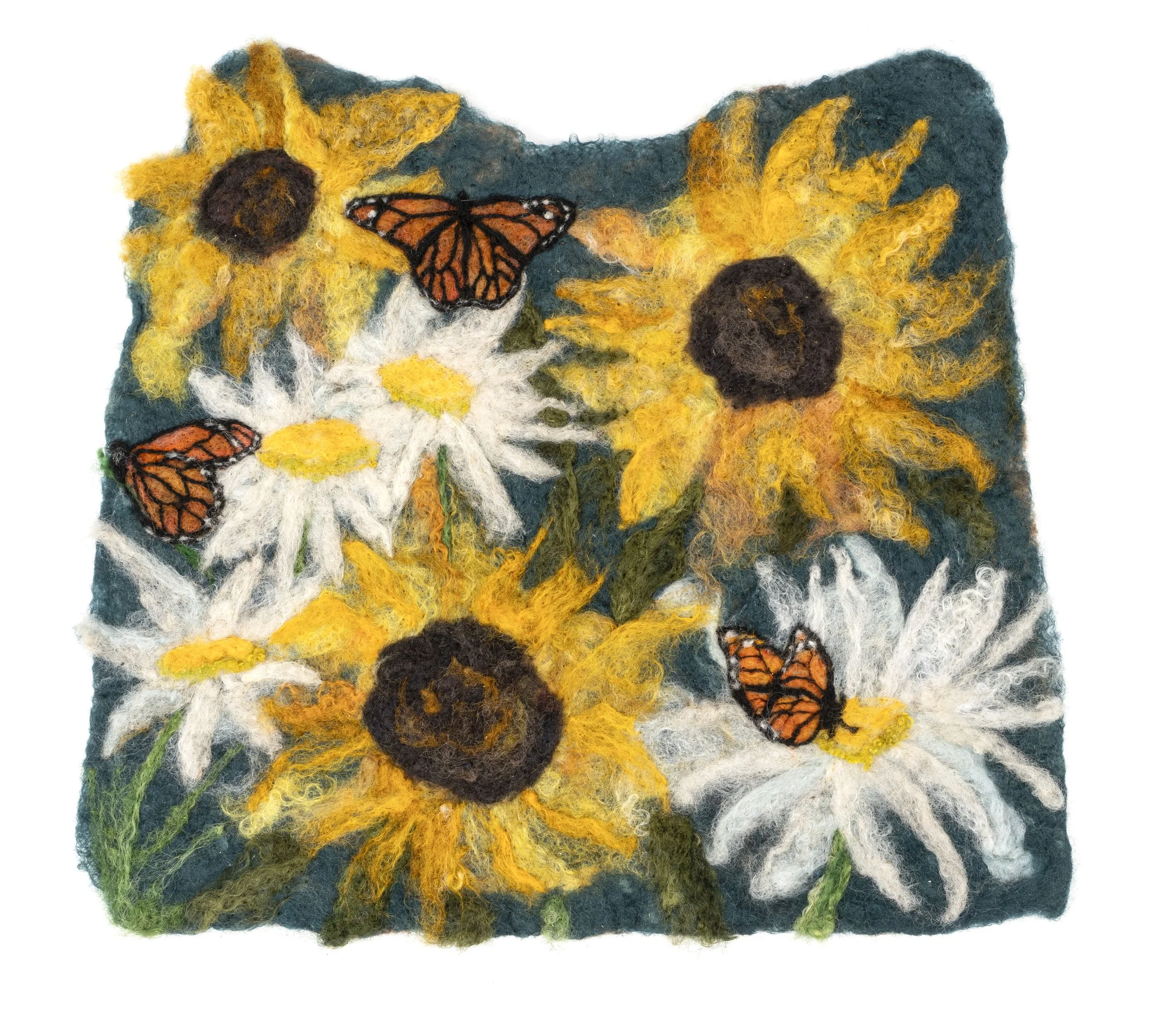 Dance of the Monarch, Original 29” x25 “ Watercolour with Wool